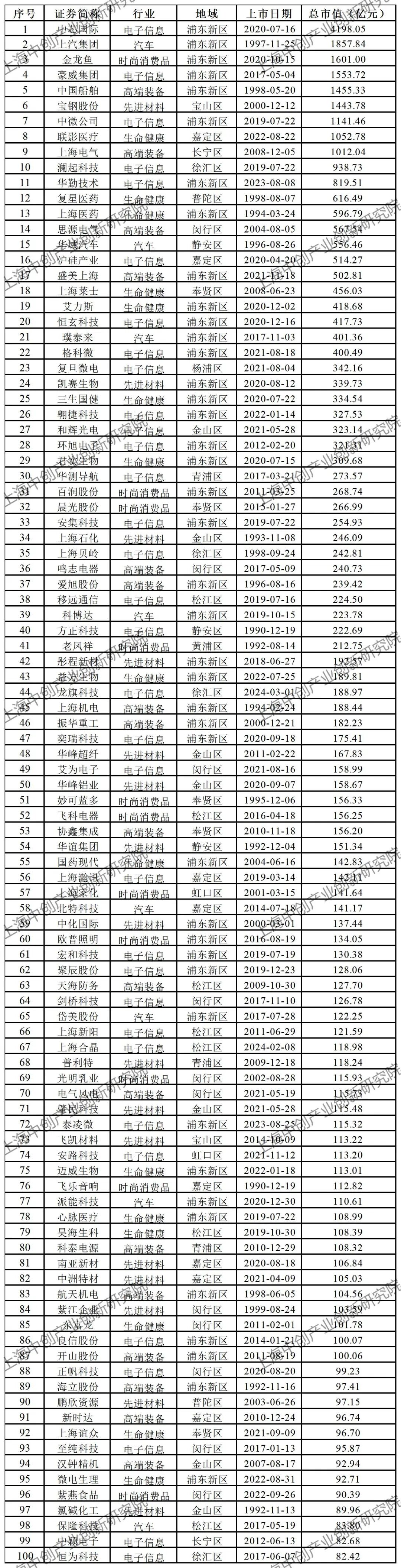 上海市值百强: